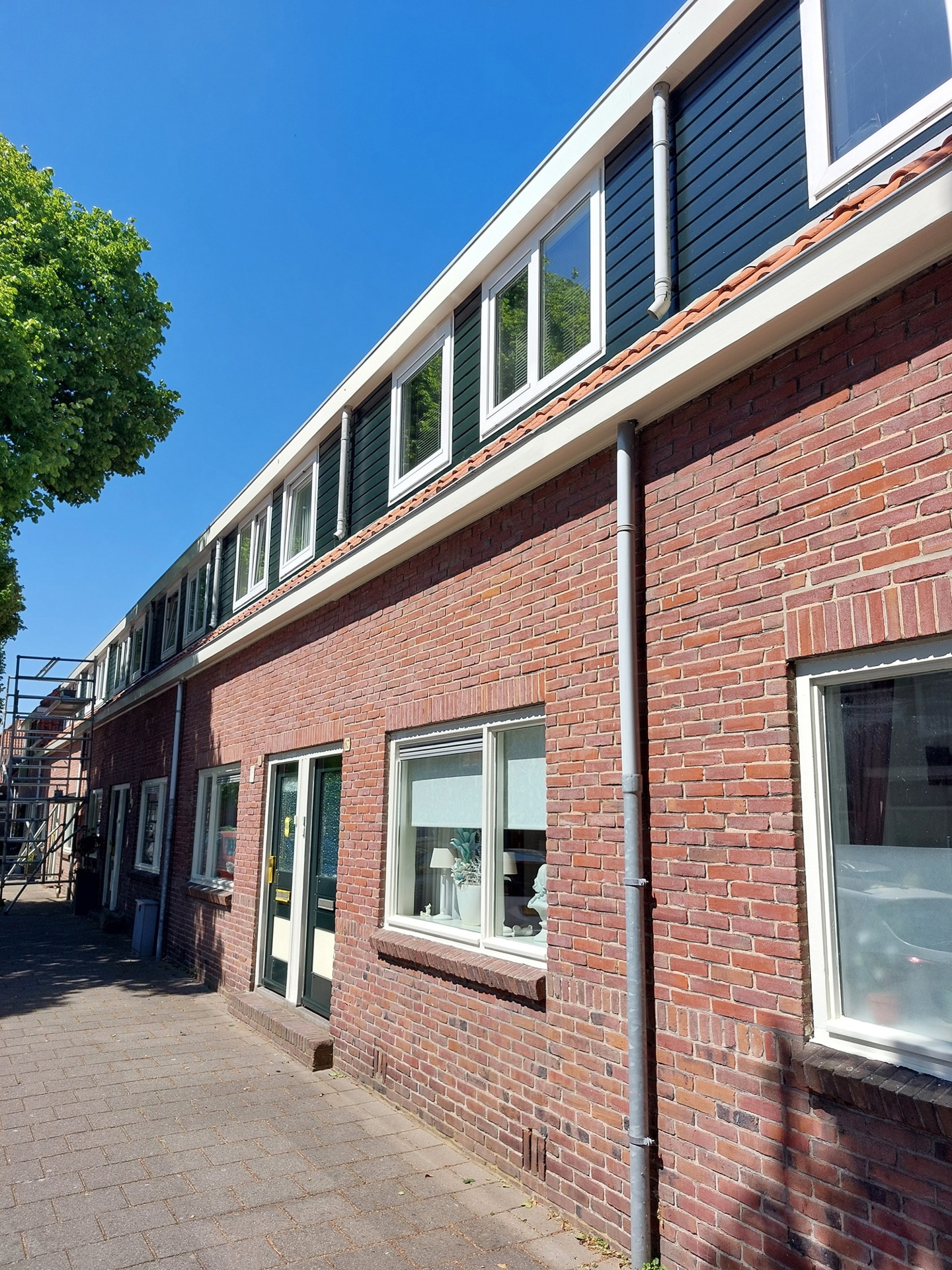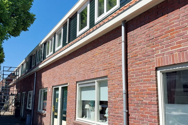 De firma Den Hollander uit Haarlem heeft alle houten onderdelen van woningen in de Tussenbeeksweg en Vlierstraat in IJmuiden geschilderd. Het kunststof van de woningen is gereinigd en de dakbedekking hersteld.